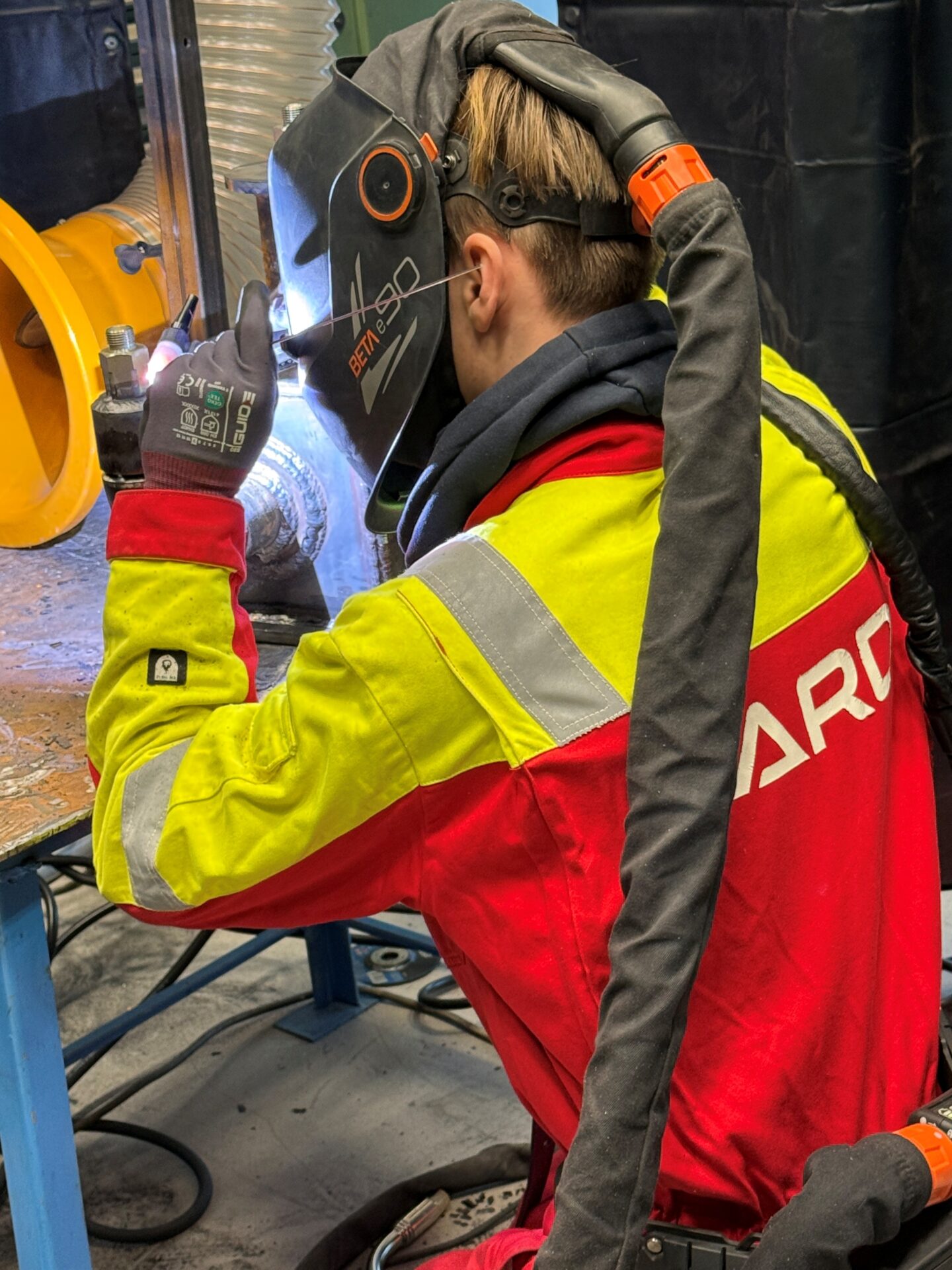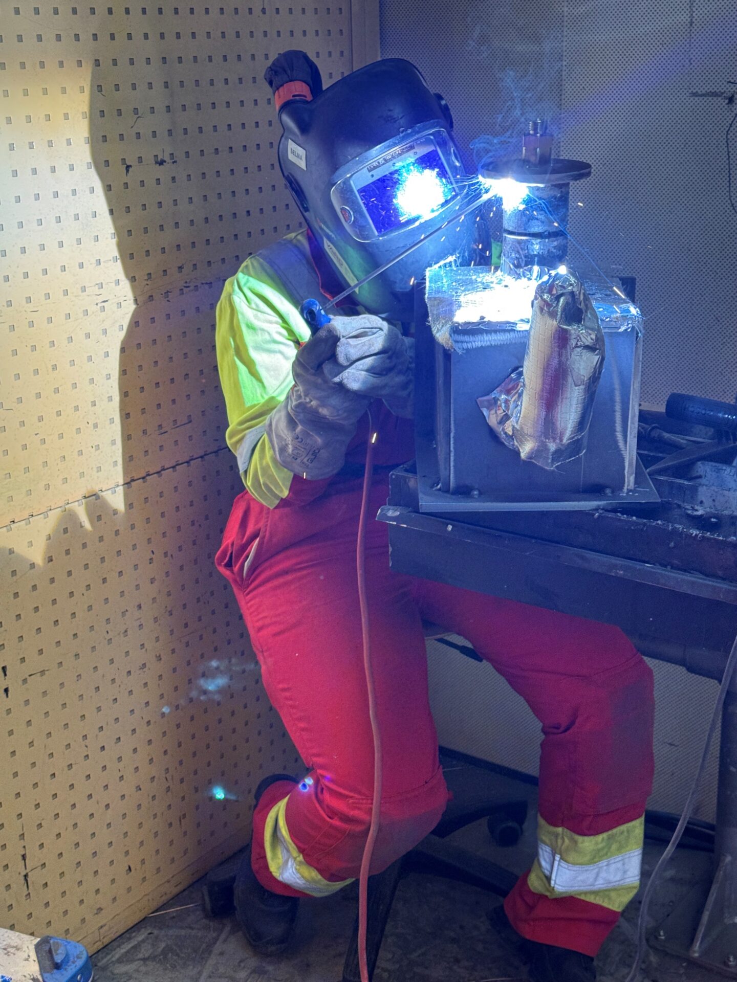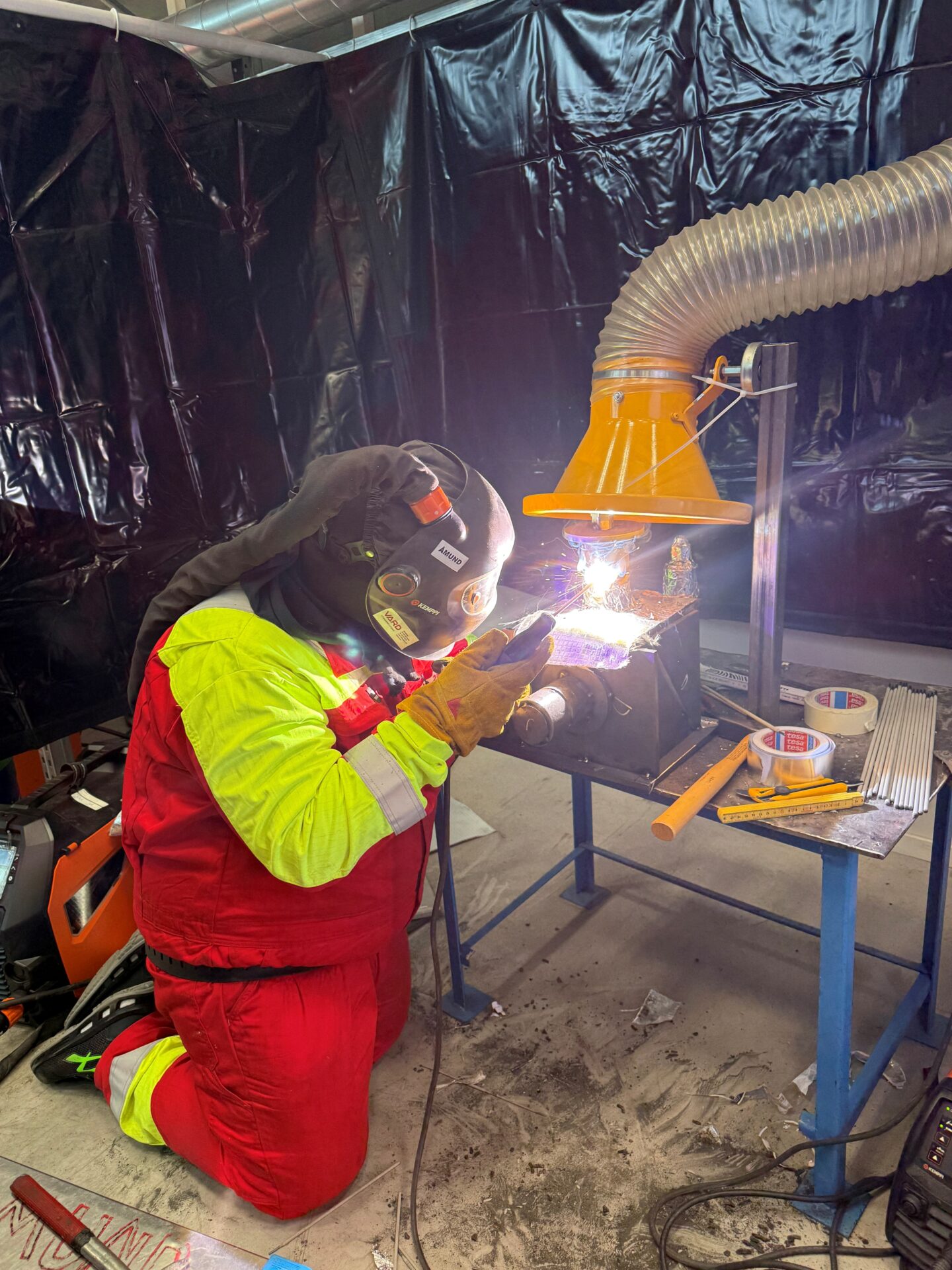 Jakob sveisar med elektrode